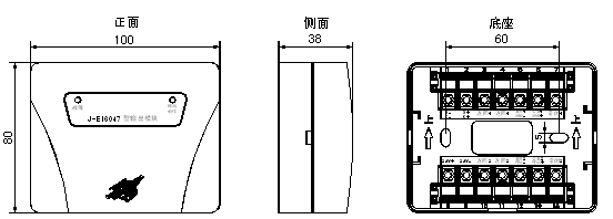 安裝模塊時,先用M4螺釘將底座(根據(jù)標識“↑”、“上”確定安裝方向)固定在預埋的DH86型接線盒上,也可利用安裝孔直接固定在安裝位置。底座接線完成后將模塊插入底座。