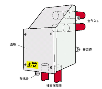 為監(jiān)控加熱器的工作情況,提供了一套溫度自動(dòng)調(diào)節(jié)裝置,監(jiān)控離開空氣采樣扇的空氣溫度。如果加熱器沒有工作,溫度自動(dòng)調(diào)節(jié)裝置的觸點(diǎn)閉合并發(fā)出一般故障信號。當(dāng)GST空氣采樣式感煙火災(zāi)探測報(bào)警器與模擬編碼火災(zāi)自動(dòng)報(bào)警系統(tǒng)連接時(shí),可利用消防模塊(監(jiān)視模塊)進(jìn)行故障報(bào)警。