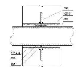 1.剛性套管安裝:主體結(jié)構(gòu)鋼筋綁扎好后,按照給排水施工圖標高幾何尺寸找準位置,然后將套管置于鋼筋中,焊接在鋼筋網(wǎng)中,如果需氣割鋼筋安裝的,安裝后必須用加強筋加固,并做好套管的防堵工作。剛性套管安裝如圖所示: