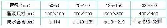 3.嚴格按照標準圖集加工制作防水套管、穿墻套管,套管長度按結(jié)構(gòu)施工圖尺寸確定,套管管徑參照下列標準: