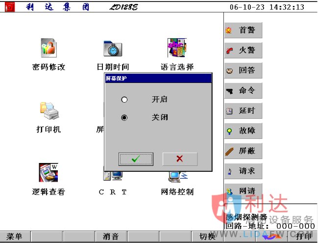 利達LD128EII消防主機屏幕保護設置